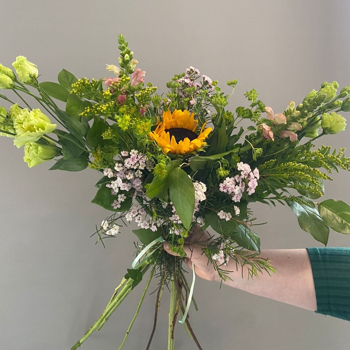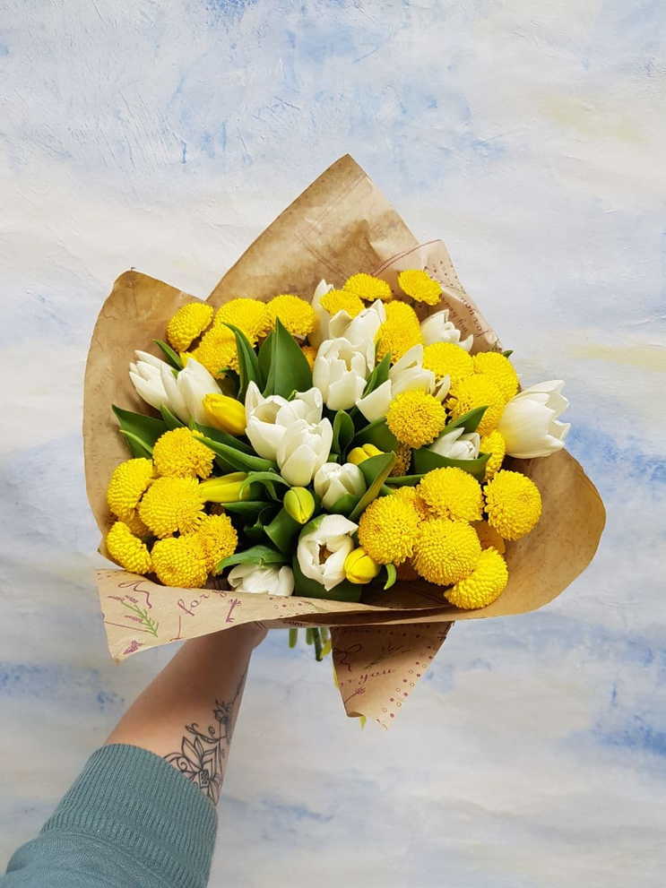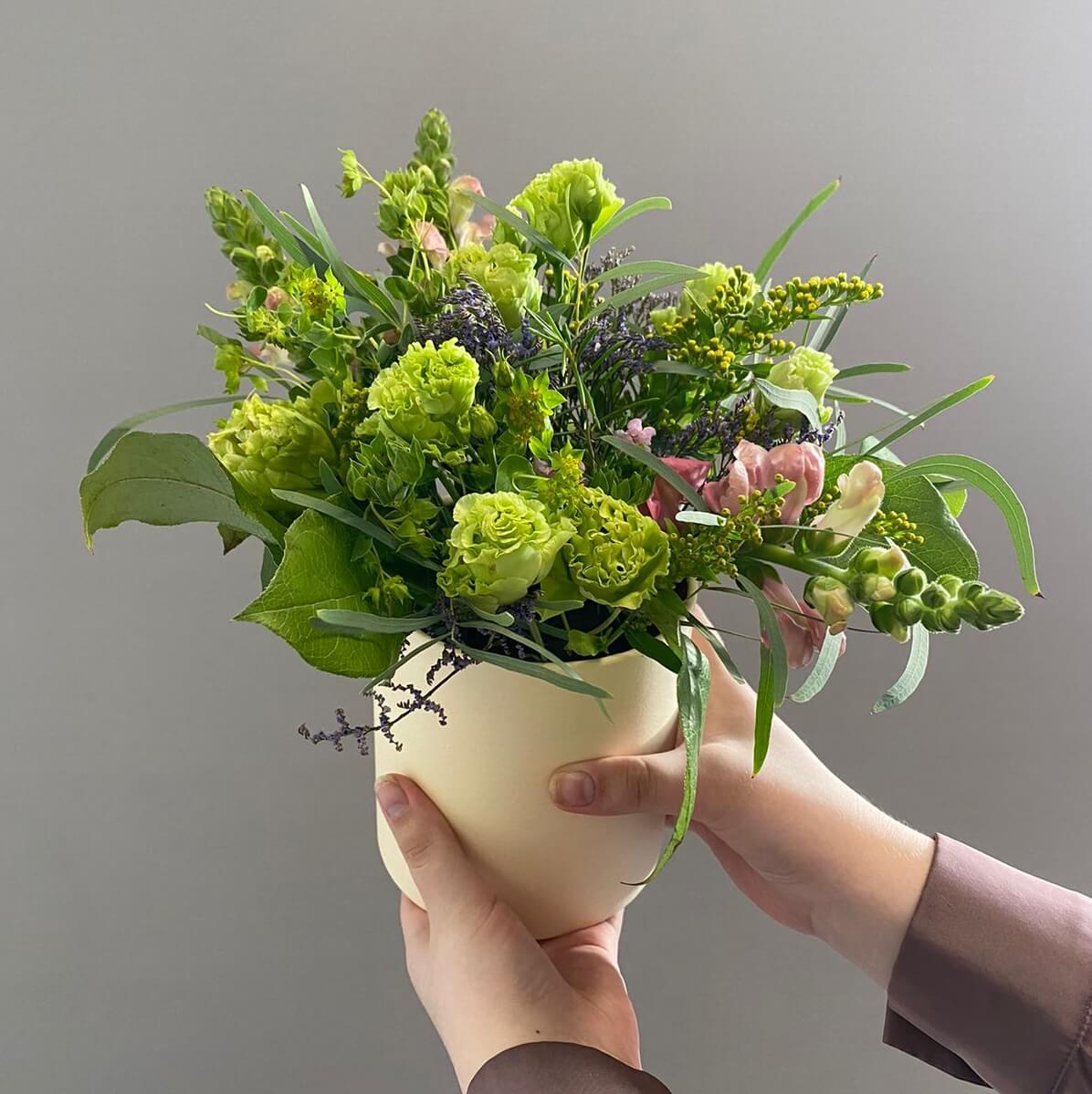 Собирать красочные букеты из сезонных цветов и материалов